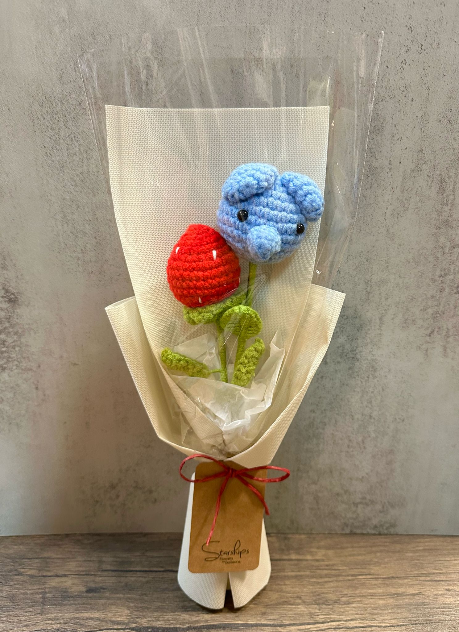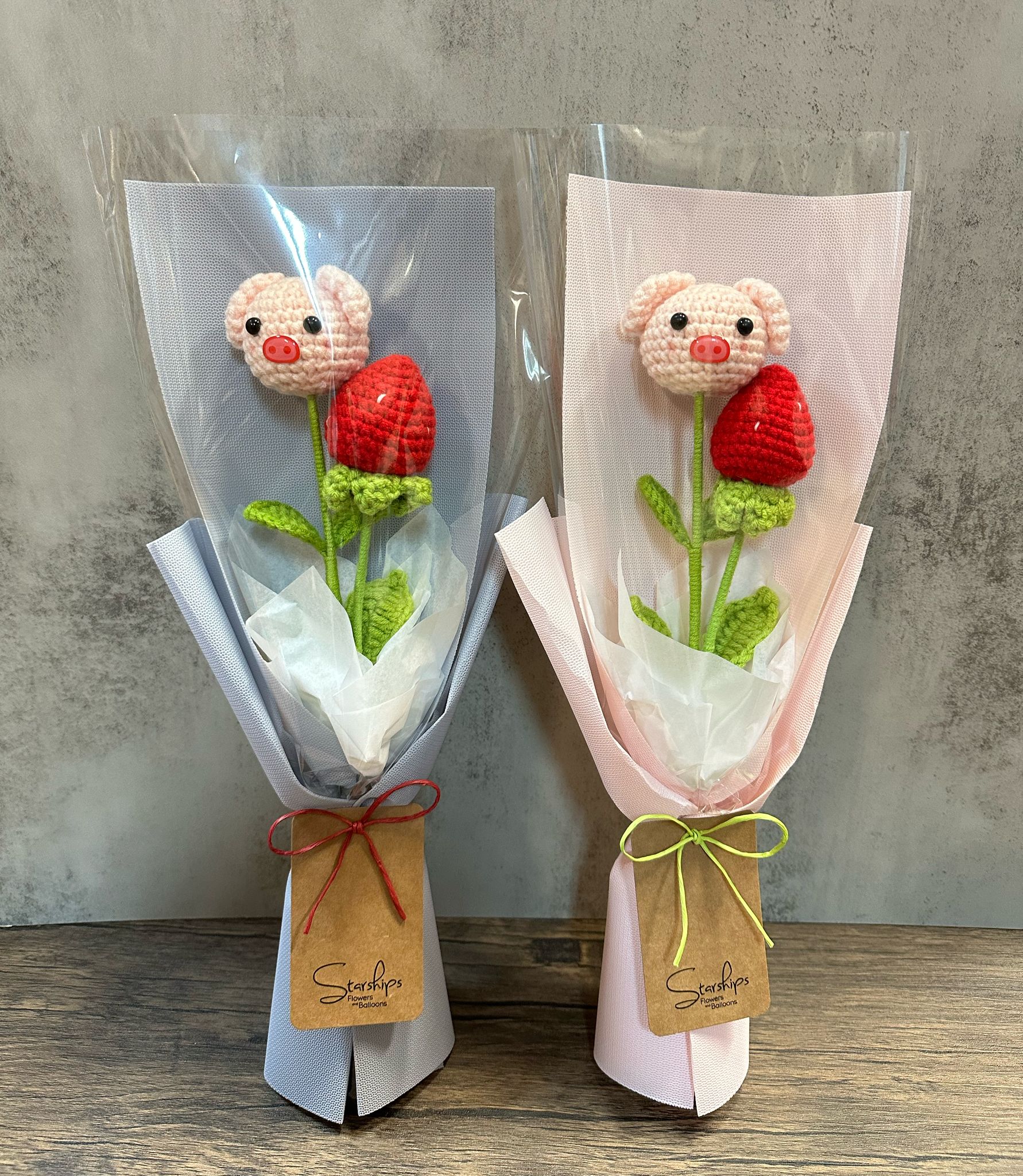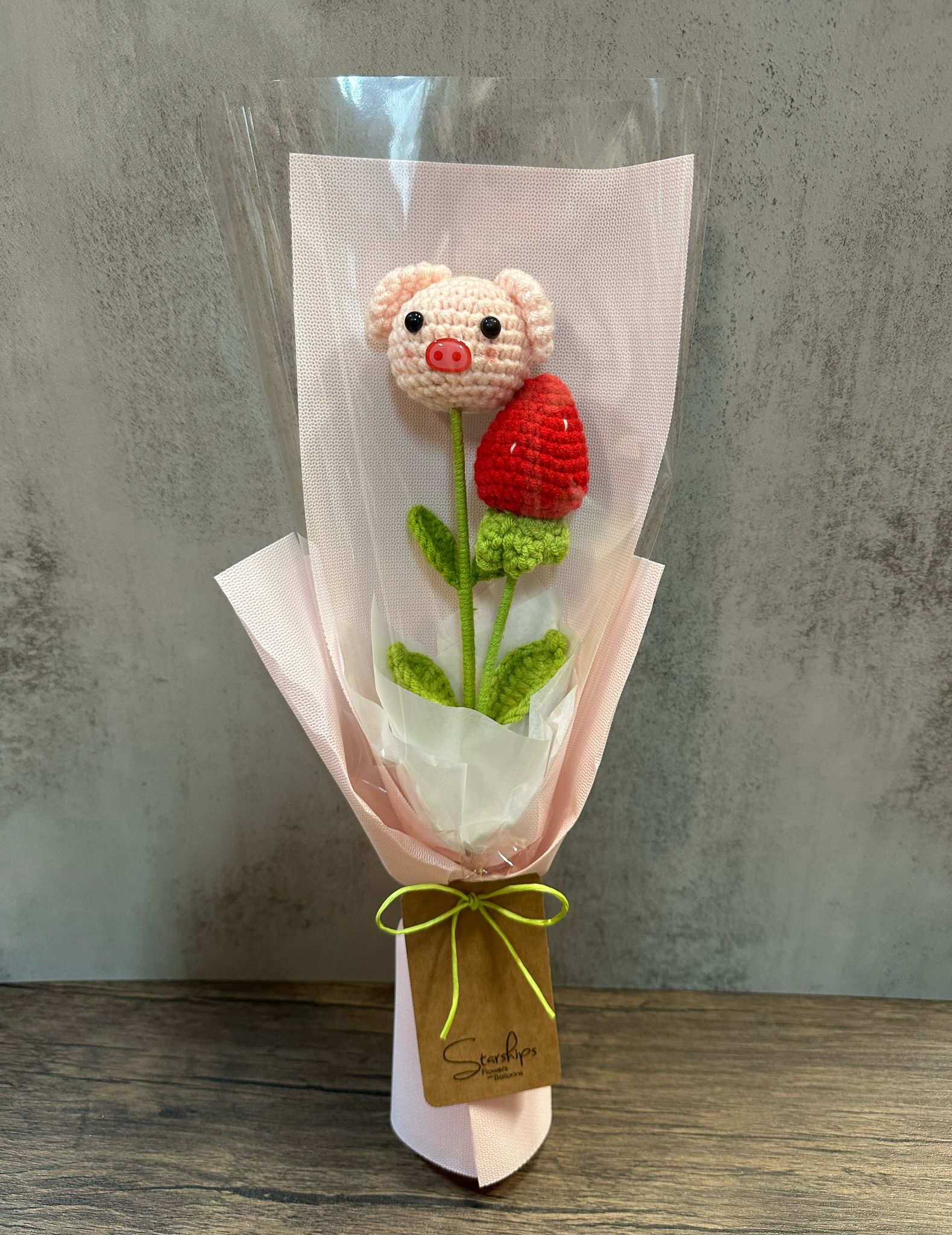 Crochet Animal x 1 , Strawberry or Heart x 1. Colour Selection : Various design available.Comes with wrapper and a free blank greeting card.