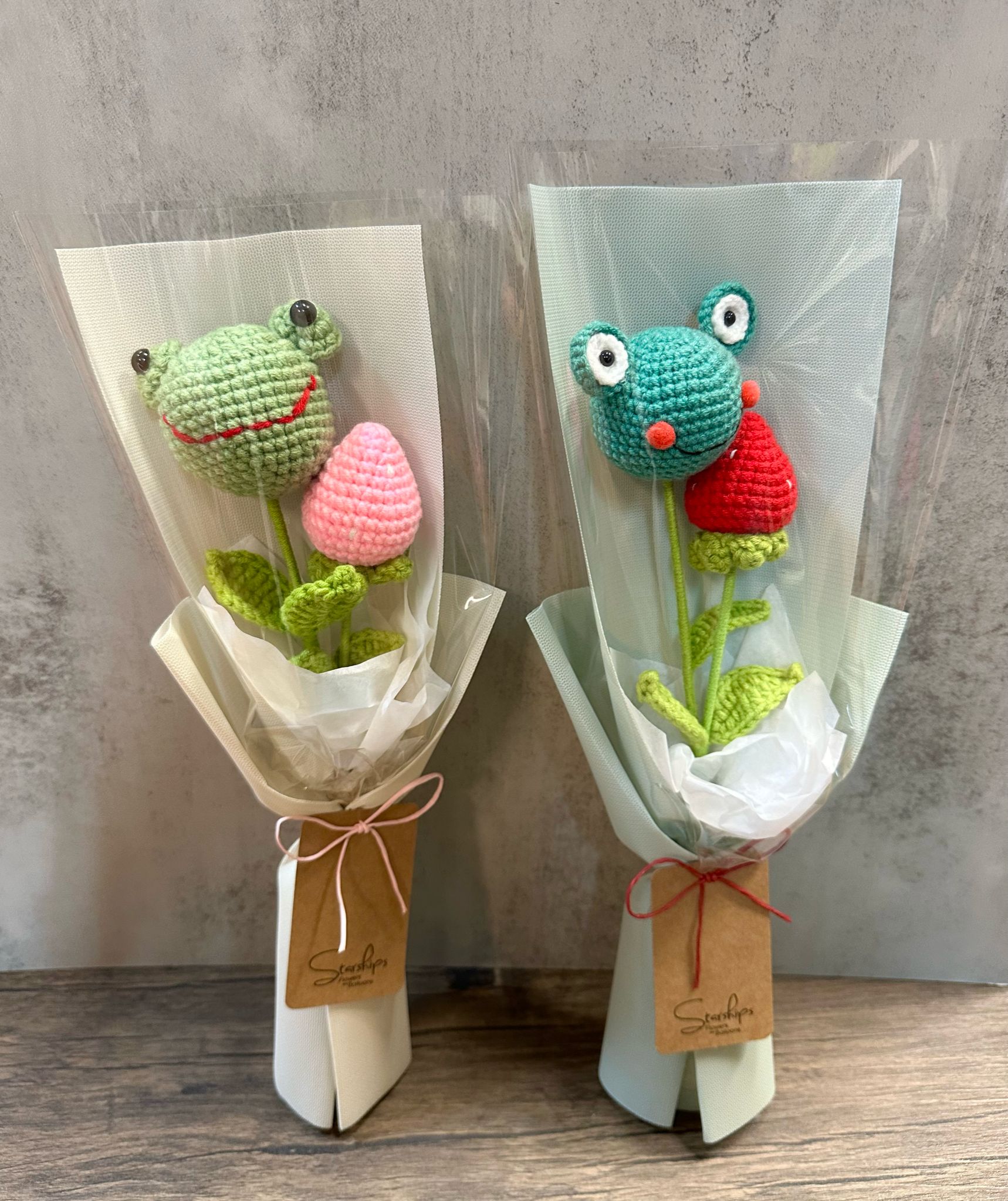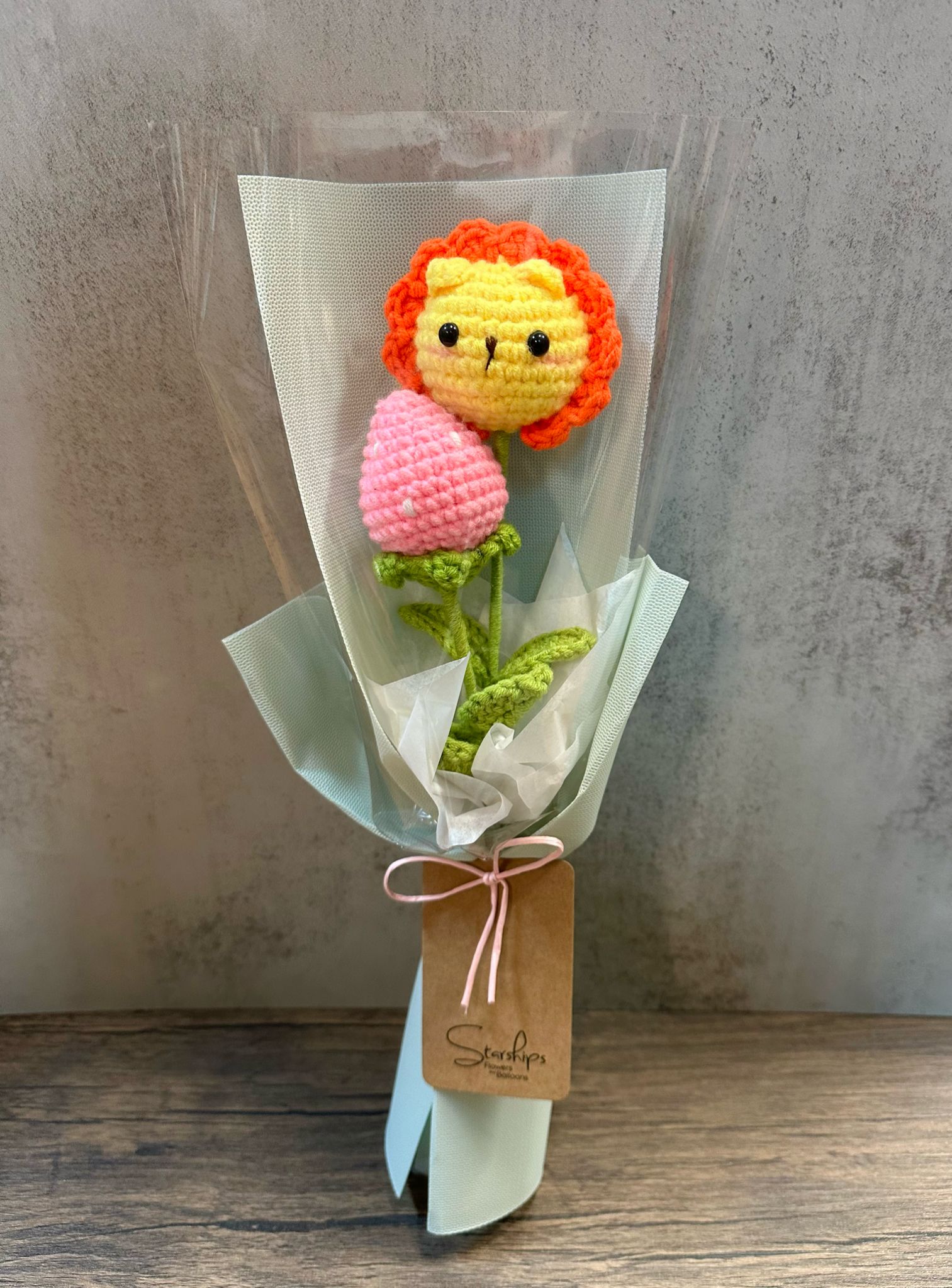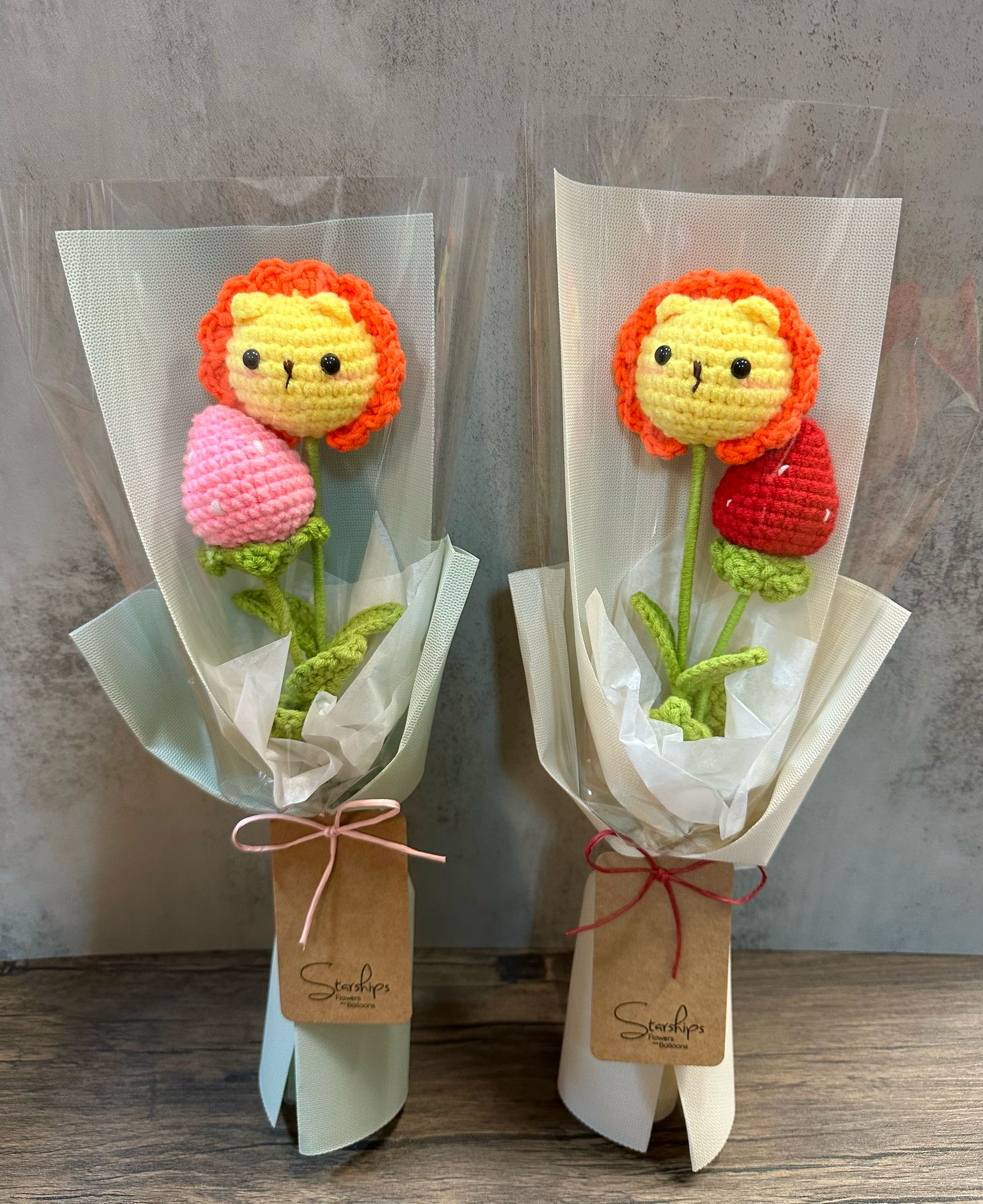 Crochet Animal x 1 , Strawberry or Heart x 1. Colour Selection : Various design available.Comes with wrapper and a free blank greeting card.